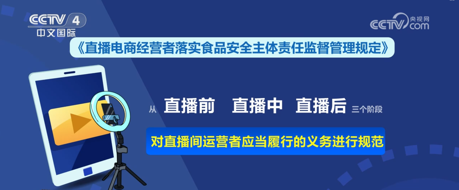 《》从曲播前、曲播中到曲播后三个阶段对曲播间运营者该当履行的权利进行规范,会上记者领会到,23日,市场监管总局正式对外发布了《食物发卖连锁企业落实食物平安从体义务监视办理》。《》要求企业总部该当成立并实施笼盖企业总部、分支机构、门店的食物平安风险防控工做轨制机制,企业总部、分支机构、门店均要成立并实施“日管控、周排查、月安排”工做轨制和机制,成立“智能监测、排查安排、快速措置”等工做机制。12月23日,《曲播电商运营者落实食物平安从体义务监视办理》曾经走完审核审议流程,将依法,情节严沉的。